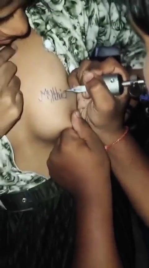 Indian girl boobs par tattoo banwati hui